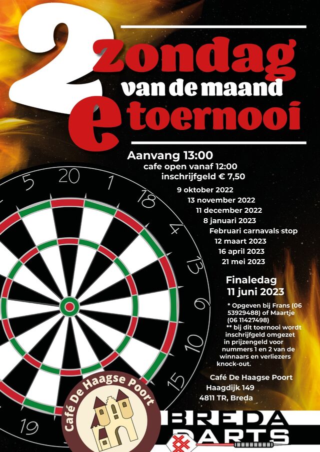 Cafe de Haagse Poort is een authentiek bruin cafe met een zaal in hartje breda. Waar u terecht kan voor een potje darts, biljarten. Maar ook voor al u feesten, partijen, koffietafels vergadering en live muziek die wij voor u kunnen verzorgen.